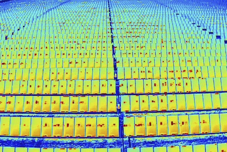 Utilizamos cámaras termográficas a bordo de drones para inspecciones. Detección temprana de problemas críticos que puedan afectar la producción energética y la rentabilidad de su planta. Análisis exhaustivo y evaluación térmica con clasificación precisa de defectos según estándares internacionales. Alta en plataforma con datos accionables y georreferenciados.